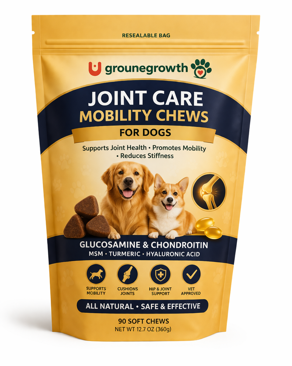 Packed with glucosamine and chondroitin, these chews help maintain joint flexibility and reduce stiffness. Ideal for aging pets or active breeds, they support long-term mobility and comfort.