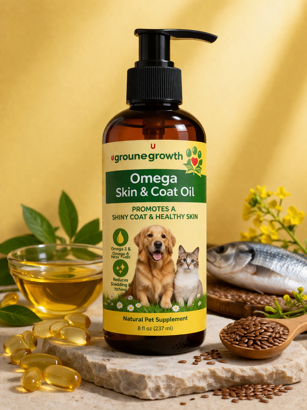 Formulated with omega-3 and omega-6 fatty acids, this oil improves skin hydration and reduces itching and shedding. Perfect for pets with dry skin, it enhances coat shine while supporting overall skin health naturally.